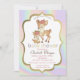 Cute baby deer and frame on holographic background. These baby shower invitations are easily customized for your event by simply adding your details.