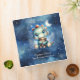 Whimsical design for Boy Baby Shower photo album features Watercolor hand painted illustration of a Cute watercolor dinosaur hugging teddy bear in the starry night. Hand drawn typography.
