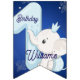 Celebrate a little one’s big milestone with this Cute Baby Elephant First Birthday design. Featuring an adorable cartoon elephant wearing a tiny crown, sitting beside a large blue number “1,” this charming artwork is perfect for a boy’s first birthday party theme, invitations, or keepsake items. The deep blue background, sparkling stars, and festive confetti make it an eye-catching and heartwarming choice for marking a special first year.