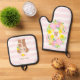 Cute Baby Elephant Flowers Monogram Kids Oven Mitt & Pot Holder Set