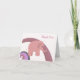 A cute thank you featuring a pink baby elephant with a rainbow background. Great for baby shower thank you's!