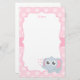 A cartoon of a cute baby elephant spouting tiny pink hearts from its trunk. Pink colour palette and classic polka dots pattern makes this suitable for writing well wishes and advices for mommy to be or new mothers at baby showers.