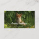 Business cards with a photograph featuring a cute little baby fox with red and white fur. Surrounded by lush green leaves and grasses.