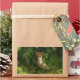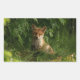 Stickers with a photograph featuring a cute little baby fox with red and white fur. Surrounded by lush green leaves and grasses.