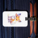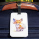 A very cute luggage tag with an illustration of a smiling baby fox.