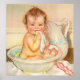 Decorate your wall with a charming vintage poster, featuring a cute baby having a bath in a bowl.