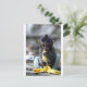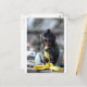 Cute baby macaque monkey eating banana postcard