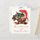 Cute Baby Owl In Christmas Hat and Gift - Cartoon Postcard