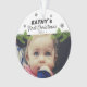 Cute Baby`s First Christmas Snowflake Pine Photo Ornament. Pine tree branches and snowflakes. Personalize the ornament with your baby`s photo, name and year of birth. A sweet keepsake for the baby`s 1st Christmas.