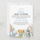 Cute gender unknown baby shower animals in masks covid virtual baby shower. White flowers botanical foliage and elephant, lion and zebra in face masks. Script text, part of a collection available in different colour ways.