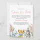 Cute gender unknown baby shower animals in masks covid virtual baby shower. White flowers botanical foliage and elephant, lion and zebra in face masks. Script text, part of a collection available in different colour ways.