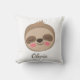 Cute Baby Sloth Face With Custom Name Kids Throw Pillow
