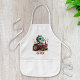 A personalized whimsical apron that merges cuteness with functionality. Picture a charming baby dinosaur at the wheel of a red cute miniaturized tractor, creating a delightful and imaginative experience for young ones.