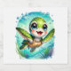Cute Baby Turtle Swimming in Ocean Sparkling Wine Label
