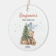 Commemorate your little one’s first holiday season with this Cute Baby’s First Christmas Tree Blue Teddy Bear ceramic ornament. Featuring an adorable blue teddy bear sitting beside a festive Christmas tree adorned with twinkling lights and ornaments, this sweet design perfectly captures the magic of a baby’s first Christmas. Crafted from high-quality ceramic with a glossy finish, it’s both durable and charming — a keepsake you’ll cherish for years to come. Personalize it with your baby’s name and the year to make it a heartwarming addition to your tree or a thoughtful gift for new parents.