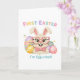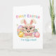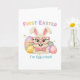 Celebrate your little one's very first Easter with this adorable design featuring a charming bunny, complete with heart-shaped glasses and a bow tie, surrounded by festive, colorful Easter eggs. The playful text 'FIRST EASTER I'm Egg-cited!' perfectly captures the joy and excitement of this special milestone. This design is perfect for memorable gifts to cherish those precious first holiday memories. A sweet and vibrant addition to any baby's first Easter celebration.