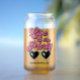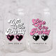 Fun set of can glasses for the bride and her bachelorette party guests. The glass for the bride features "Wife of the Party" in a white retro 70's style script and cute heart-shaped pink sunglasses; the glasses for her guests feature "Life of the Party" in a pink script. On each glass, you can add the party location or the name of the bride and her guests in simple modern typography. Single can glasses are available for additional guests (message us for the link).