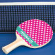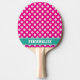 Cute ball pattern print ping pong paddle for table tennis chick. Personalized name or monogram ping pong paddle for table tennis. Sports game Birthday party gift idea for sporty men women and teen school kids (boy or girl). Add your own surname or monogrammed letter initials. Custom background colour ie neon pink and turquoise blue. Fun for player, coach or club house. Also great as college dorm accessories for students. Unique Holiday presents for children, grandson, son, daughter, granddaughter, mom, sister, friend etc. Leisure equipment with novelty sports graphics.