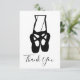 Flat thank You card with a black and white illustration of a ballet dancers lower legs and ballet slippers, standing on her toes, en pointe.