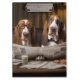 Cute basset hounds reading newspaper clipboard
