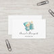 Business cards with an adorable illustration. A cozy bear with stars and sparkles in its fur. Standing beside a Christmas tree. Pastel blue-green colour. Whimsical and cute.