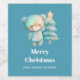 Cute Bear and Christmas Tree Holiday Teal Wine Label