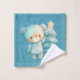 Towel set with an adorable illustration. A cozy bear with stars and sparkles in its fur. Standing beside a Christmas tree. Pastel blue-green colour. Whimsical and cute.