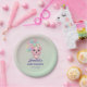 "Make your baby shower table setting extra special with these personalized paper plates! Featuring our whimsical hot air balloon and adorable pink bear design, these plates can be customized with the date of your event. They are perfect for serving cake, snacks, and appetizers, and are an essential part of our Kawaii Pastel Baby Shower Collection. These plates are the perfect finishing touch to create a charming and cohesive theme for the celebration of the new arrival."