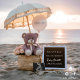 adorable pregnancy announcement featuring a sweet teddy bear sitting on soft pink roses by the beach at sunset. Perfect for social media posts, baby reveal cards, or keepsakes, this design combines dreamy coastal vibes with floral charm. Personalize it with your baby's due date or family name to make your announcement extra special.