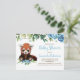 Cute Bear Blue Flowers Greenery Boy Baby Shower Invitation Postcard