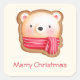 Cute Bear Face in a Red Scarf Christmas Cookie Square Sticker