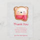 Flat thank you card with a cute and adorable bear face set on a cookie base. Wearing a red and white striped scarf.