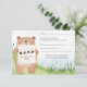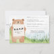 Cute bear holding sign RSVP card grass background