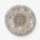 A cute cuddly bear pattern with customized initial monogram on a brown beige linen texture look background. An ideal design for anyone who loves bears, cuddly animals, forest animals etc. A gender neutral baby shower paper plate that can be customized to your details. Matching bear pattern baby shower invitations, décor and favours can be viewed in this design's collection.