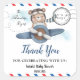 Personalize these cute baby shower postcard style square stickers with your details easily and quickly. Simply click the Edit Using Design Tools button to further edit the text, wording, font style, font size, font colour and add more or remove text. Featuring a cute bear riding a dusty blue plane with an "it's a boy" postmark. Matching items available in store! (c) The Happy Cat Studio