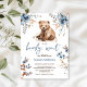 Cute bear watercolor boy baby shower invitation