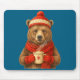 Cute Bear With Santa Hat Coffee Lover Funny Winter Mouse Pad