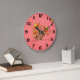 Cute Bee and Flower Pink Spring Garden Large Clock