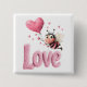 Cute Bee Fluffy Pink Love Heart Balloon 2 Inch Square Button
