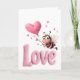 Cute Bee Fluffy Pink Love Heart Balloon Design Holiday Card