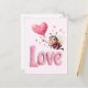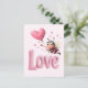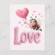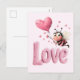 Cute Bee Fluffy Pink Love Heart Balloon Design Holiday Postcard