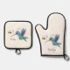 Cute bee hummingbird cartoon illustration oven mitt & pot holder set