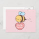 A greeting postcard with a cute little flying bee is holding on to a heart with the pun words "Bee My Valentine!" Perfect for Valentine's day for your crush!