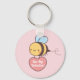 A keychain with a cute little flying bee is holding on to a heart with the pun words "Bee My Valentine!" Perfect for Valentine's day for your crush!