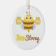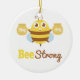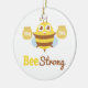 Cute ornament with a funny cartoon of a cute yellow and brown stripes bee holding two nectar collection pots. Tagline reads "Bee Strong" which is a homophone wordplay on the word "Be" with "Bee". Amuse and remind yourself of the positive and meaningful message to be strong like a bee. Background colour can be changed in customisation mode.