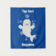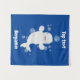 This happy beluga whale is blowing bubbles! Drawn in cute cartoon illustration style on a blue background.