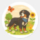 Cute Bernese Mountain Dog with Sunflower & Butterf Classic Round Sticker