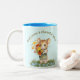 Cute Mouse with flowers. "God loves a cheerful giver" bible quote mug. Light blue background with quote from 2 Corinthians.
