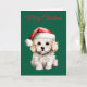 Cute Bichon Frise at Christmas with a Santa hat and gifts