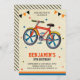 Invite your guests with this cool birthday party invitation featuring a colourful bicycle with simple typography against a parchment background. Simply add your event details on this easy-to-use template to make it a one-of-a-kind invitation. Flip the card over to reveal a grey and beige stripes pattern on the back of the card.